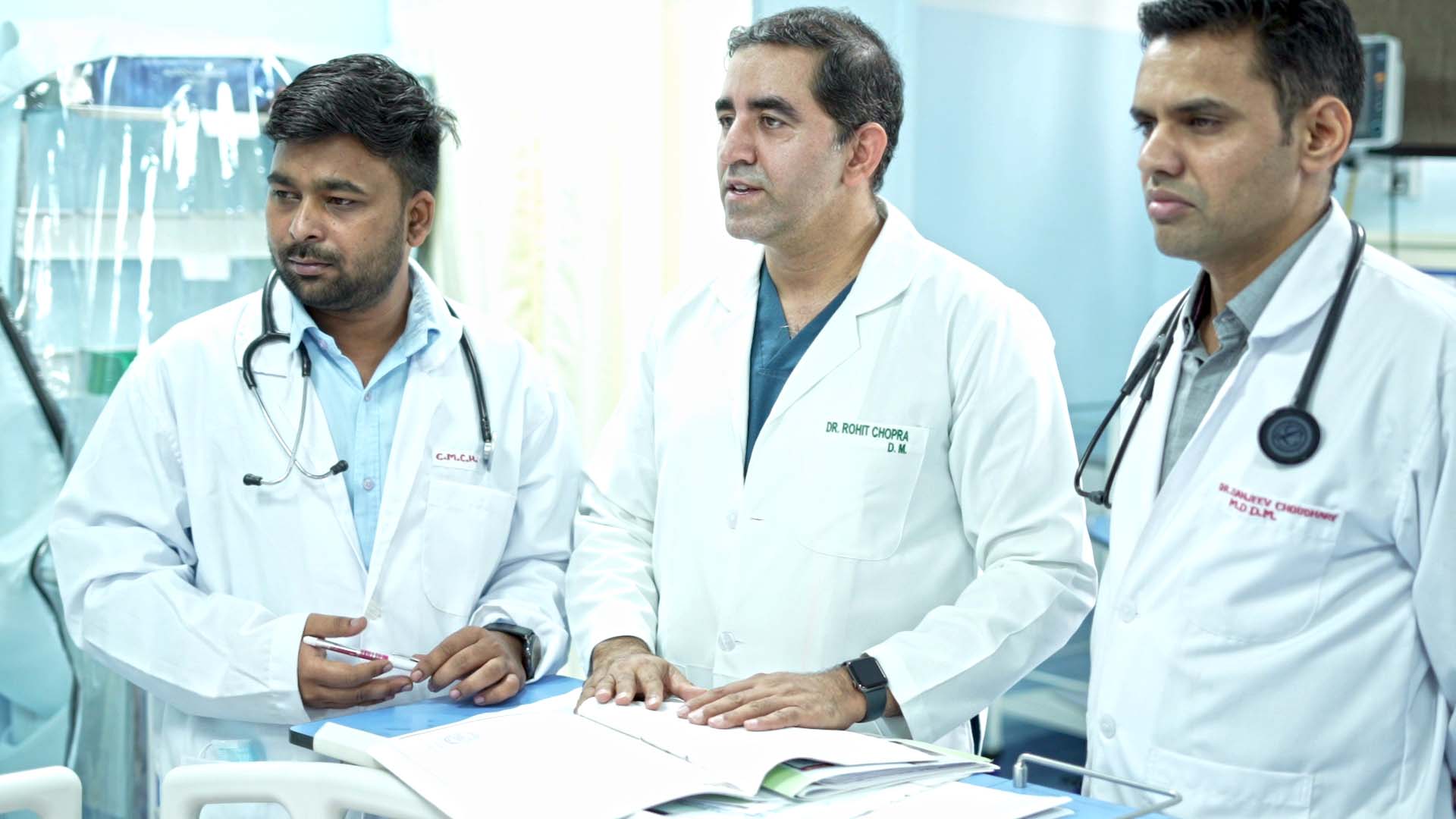 Joining hands with his father, *Dr. Rohit Chopra* brought fresh energy and specialized expertise to the hospital. After completing his DM in Cardiology from the prestigious *Jai Deva Institute*, Dr. Rohit Chopra was determined to bring advanced cardiac care to his part of the town. His efforts were pivotal in the establishment and growth of CM Chopra Hospital. With his specialized training and commitment to excellence, Dr. Rohit Chopra ensured that the hospital was equipped with the latest technology and staffed by skilled professionals to provide comprehensive cardiac care.